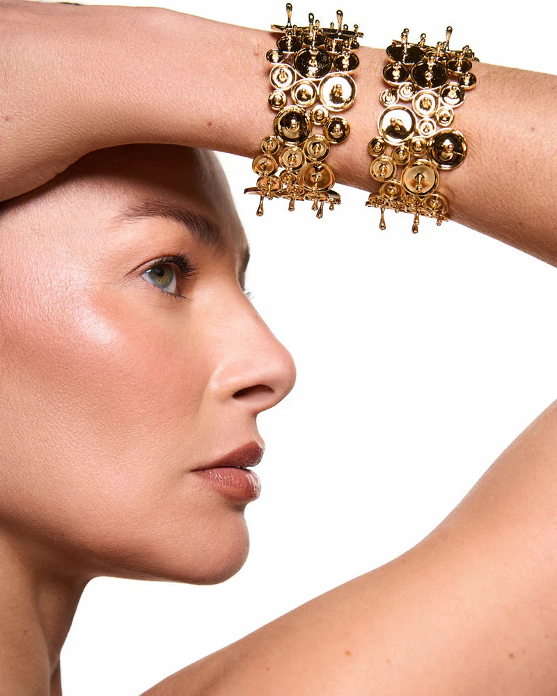 El Brazalete Chuvisco es una verdadera obra de arte en forma de una pieza de joyería ligera y versátil. Su diseño orgánico entrelaza círculos en un movimiento delicado y arquitectónico. Minimalista pero impactante, transmite poder a través de la simplicidad y elegancia a través de la sutileza.